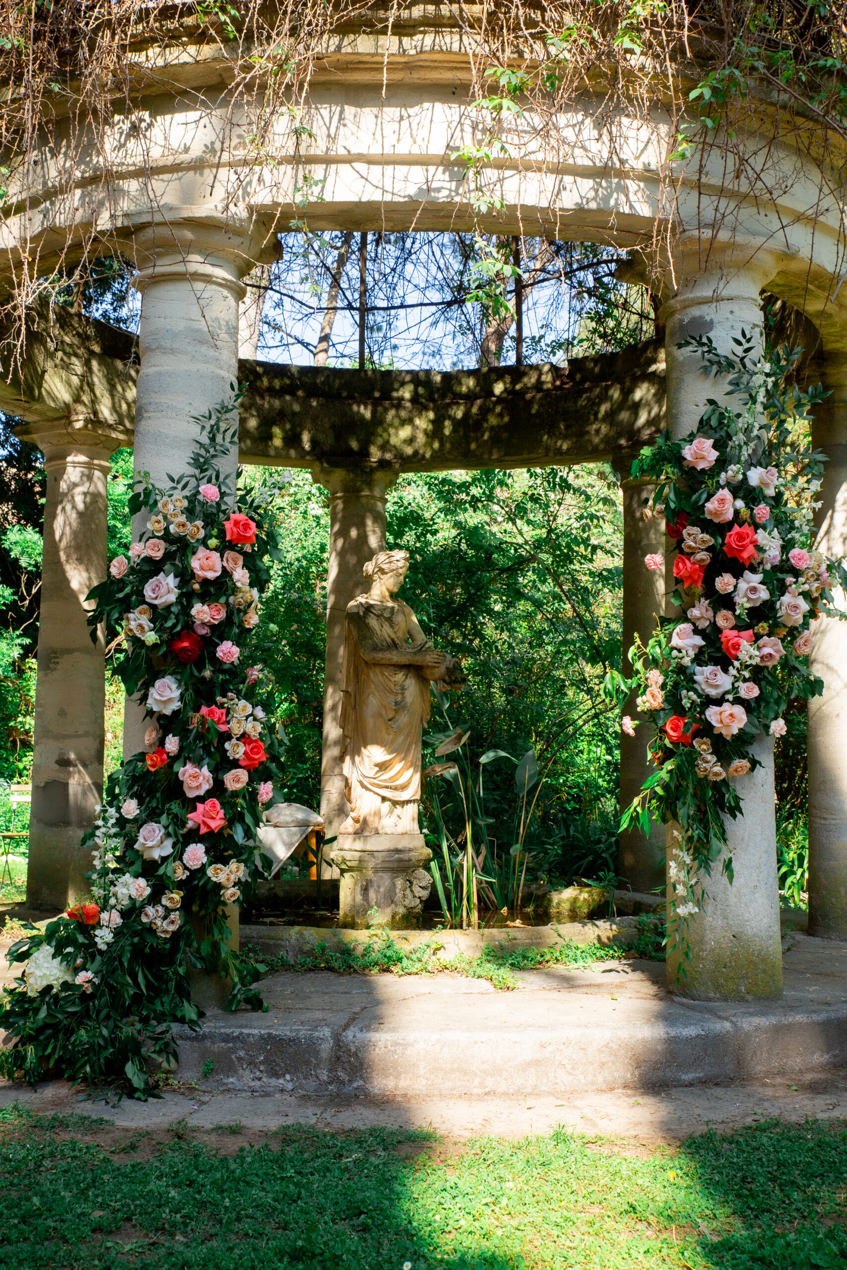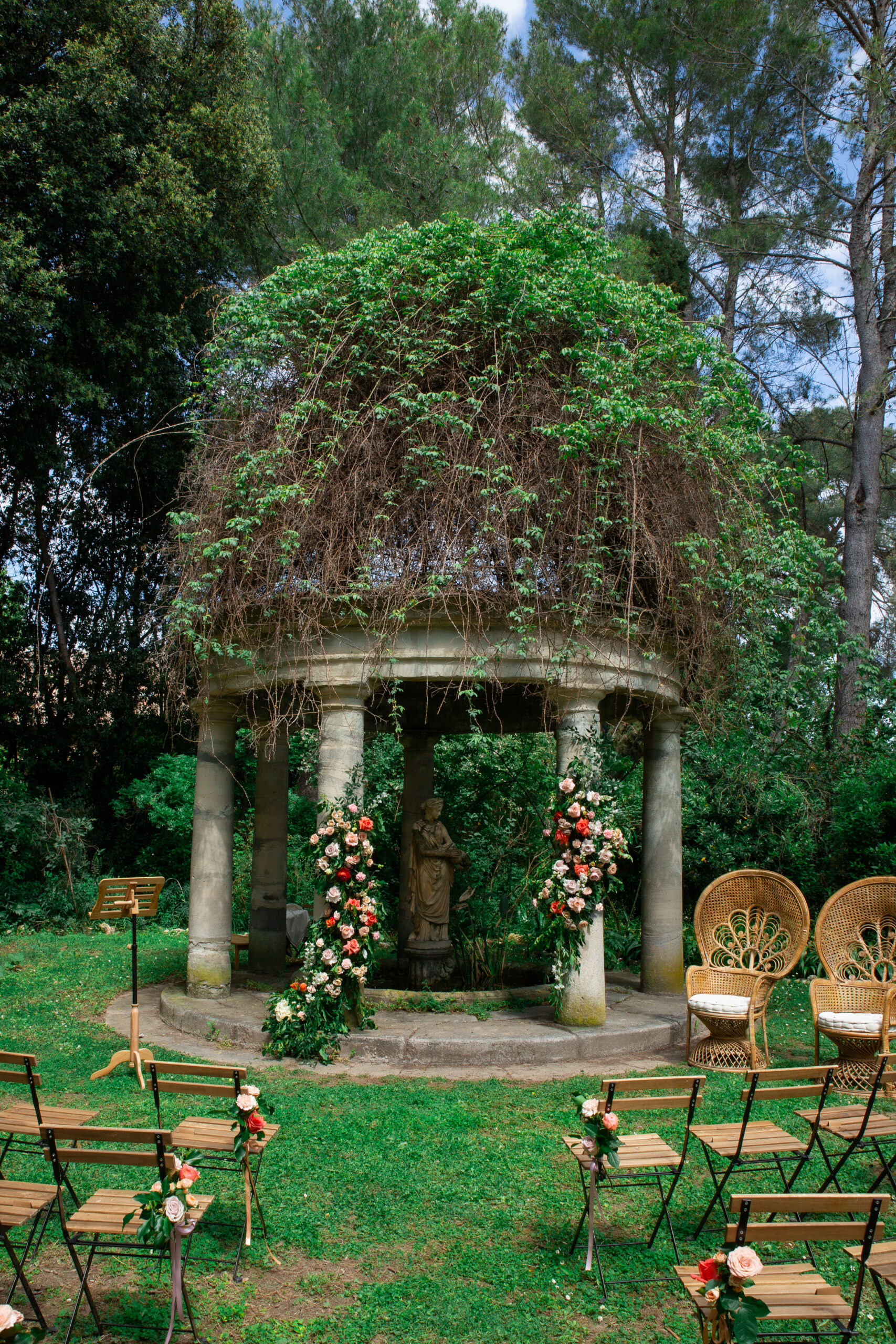 La cérémonie laïque s’est déroulée dans le jardin secret du domaine, sous le kiosque ancien.